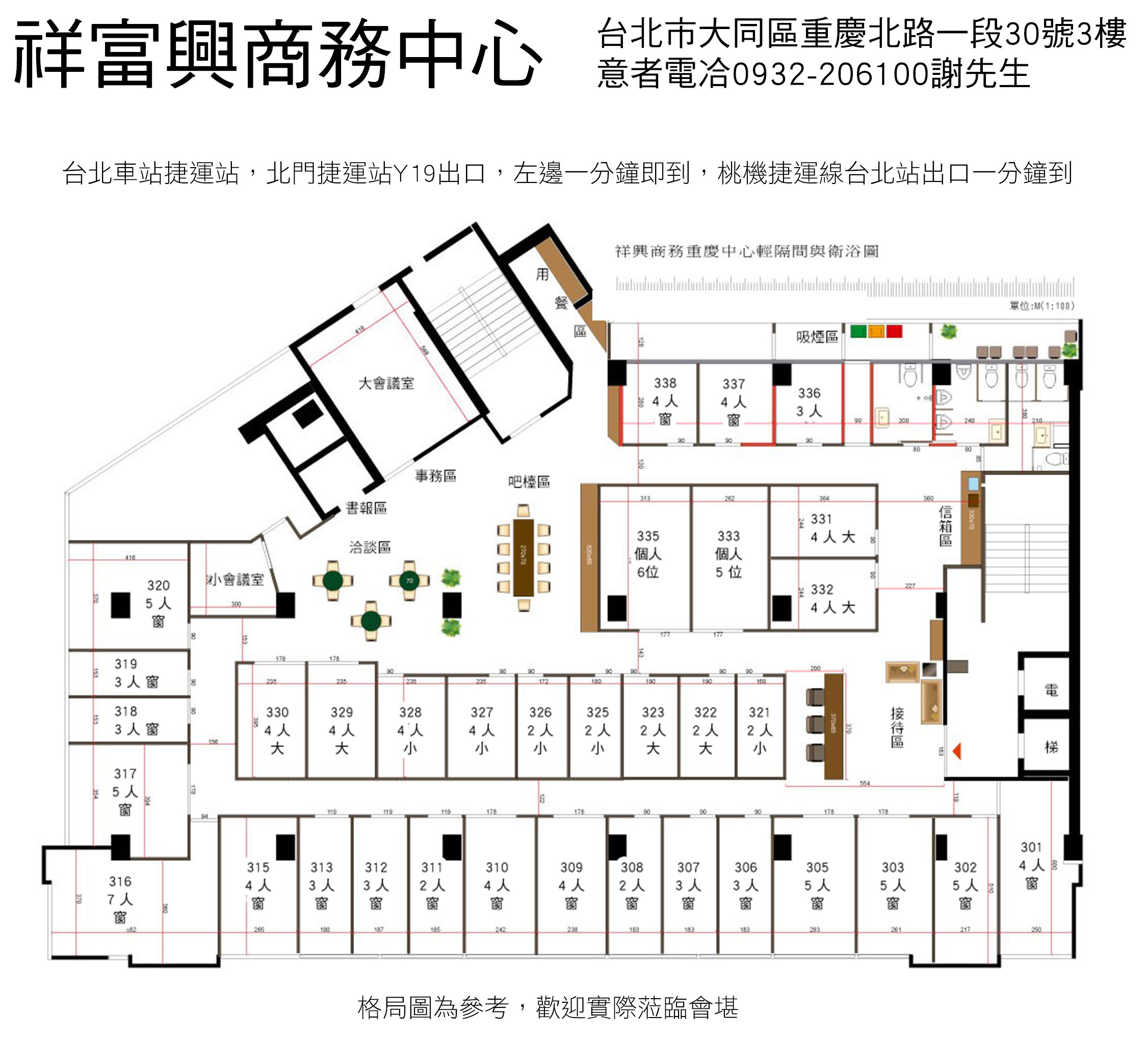 本商務中心擴大營運,將於台北車站設定全新「祥富興國際商務中心」,即日起接受預定並提供優惠